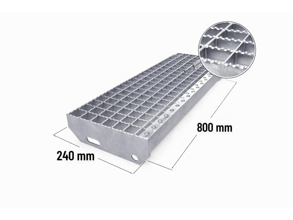 Ocelový protiskluzový zinkovaný schodišťový stupeň XSP 30/2 - 34 x 38 mm - 800 x 240 mm